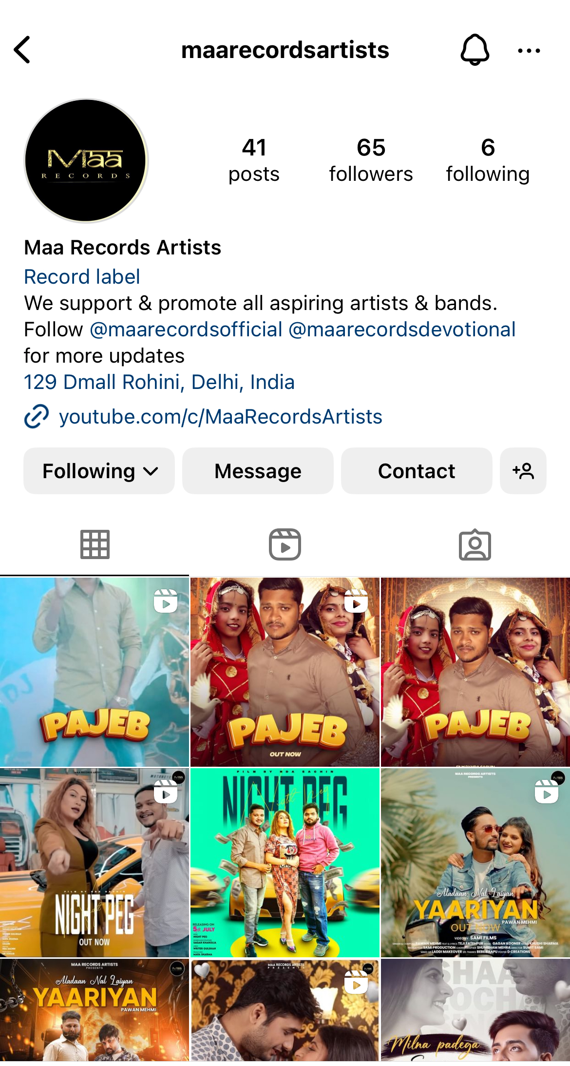 Maa records is the founder's tribute to his mother Late Dr. Mrs. Yash Nagpal. Mr.Tarun Nagpal, the founder of Maa records has created this record label to promote musical talent free of cost. His mother loved music and as an ode to the lovely woman who brought him up, he has started this company to share his blessings. Fulfilling dreams of talented people who do not have enough support to make it through a professional recording.